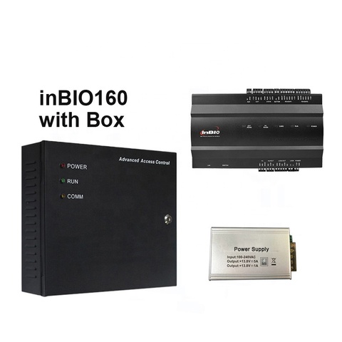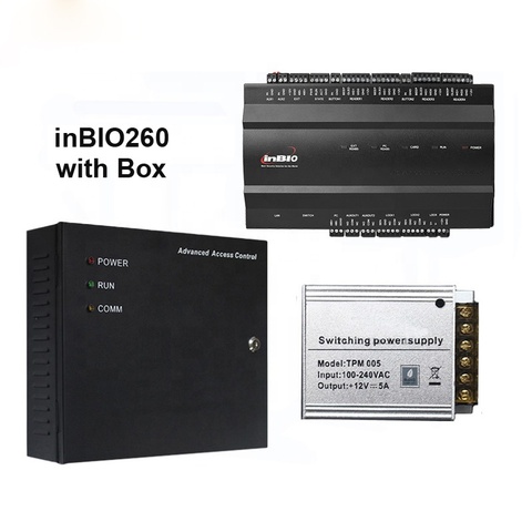 Panneau de contrôle d'accès à deux portes avec boîtier adaptateur secteur Support Access 3.5 Software inBio260 avec boîtier adaptateur secteur